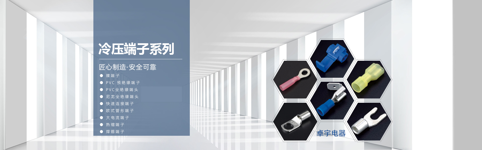 溫州卓宇電器有限公司是專(zhuān)業(yè)生產(chǎn)、銷(xiāo)售各種符合標(biāo)準(zhǔn)的冷壓端頭、接線(xiàn)端子、電氣輔件、及專(zhuān)用工具等。