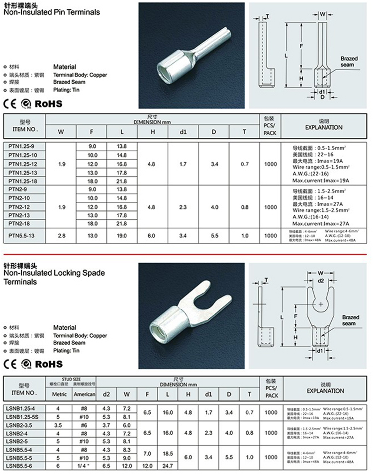 針形裸端子