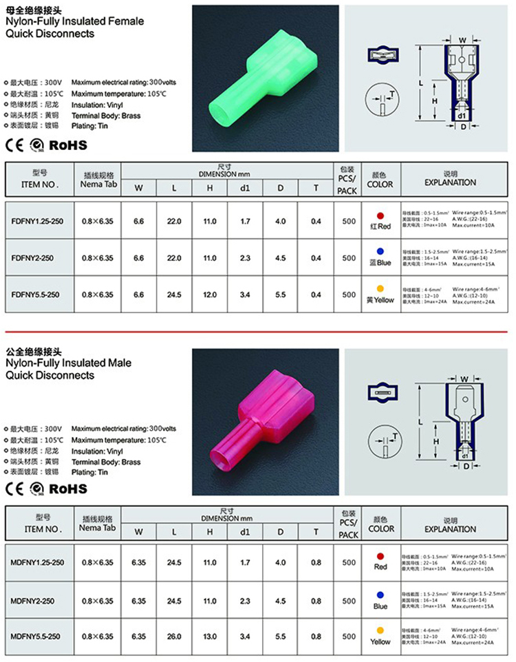 FDFNY-MDFNY 公、母全絕緣接頭(尼龍)